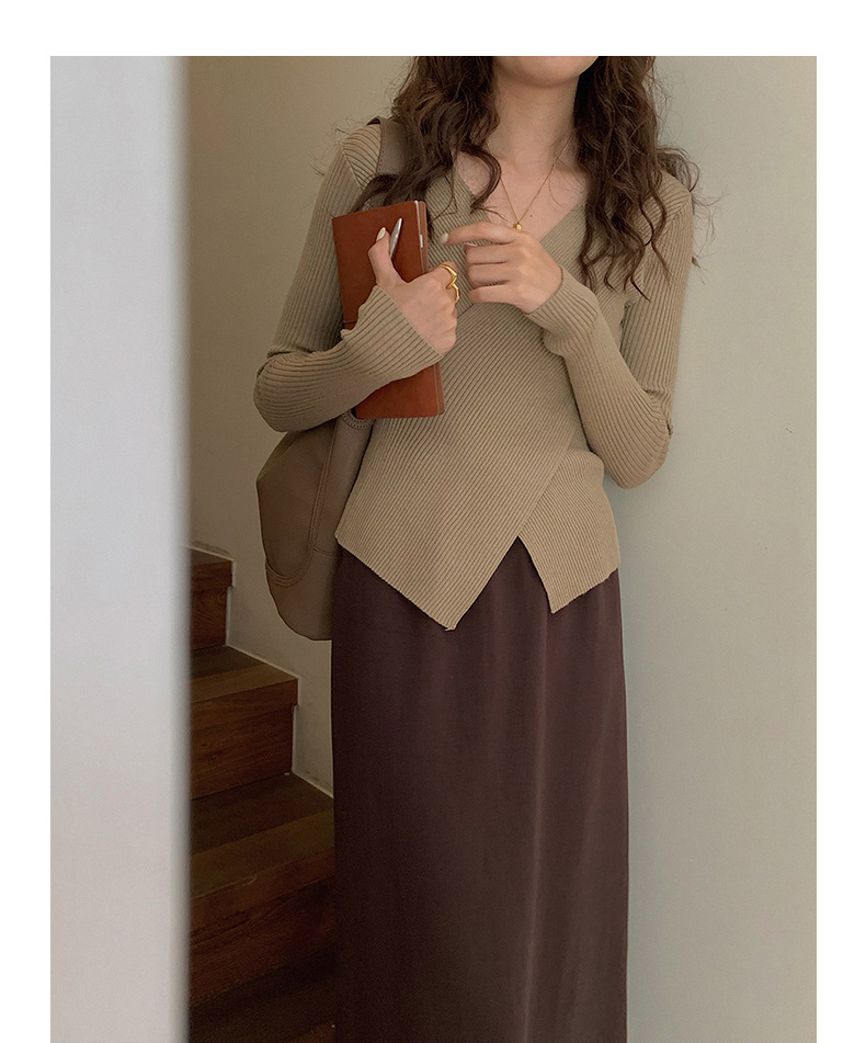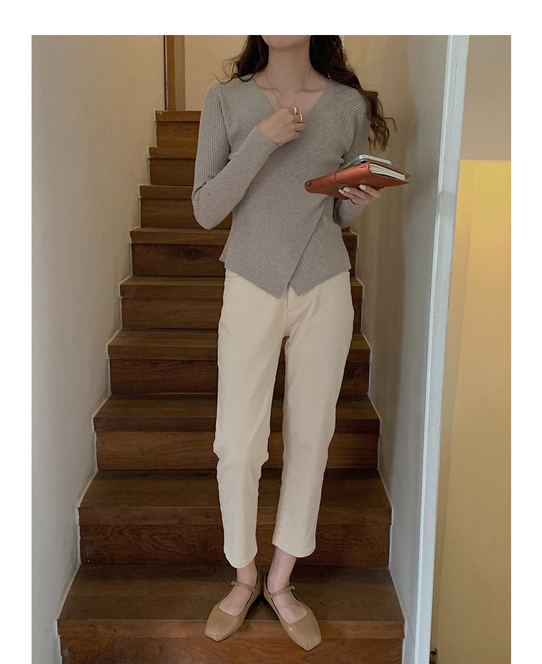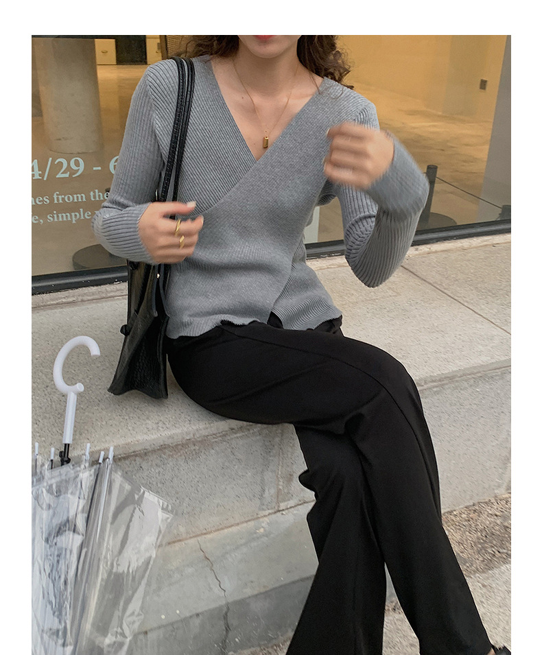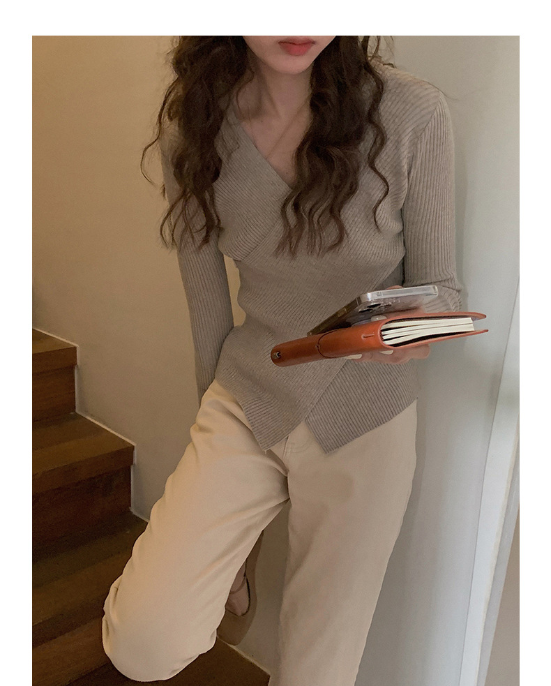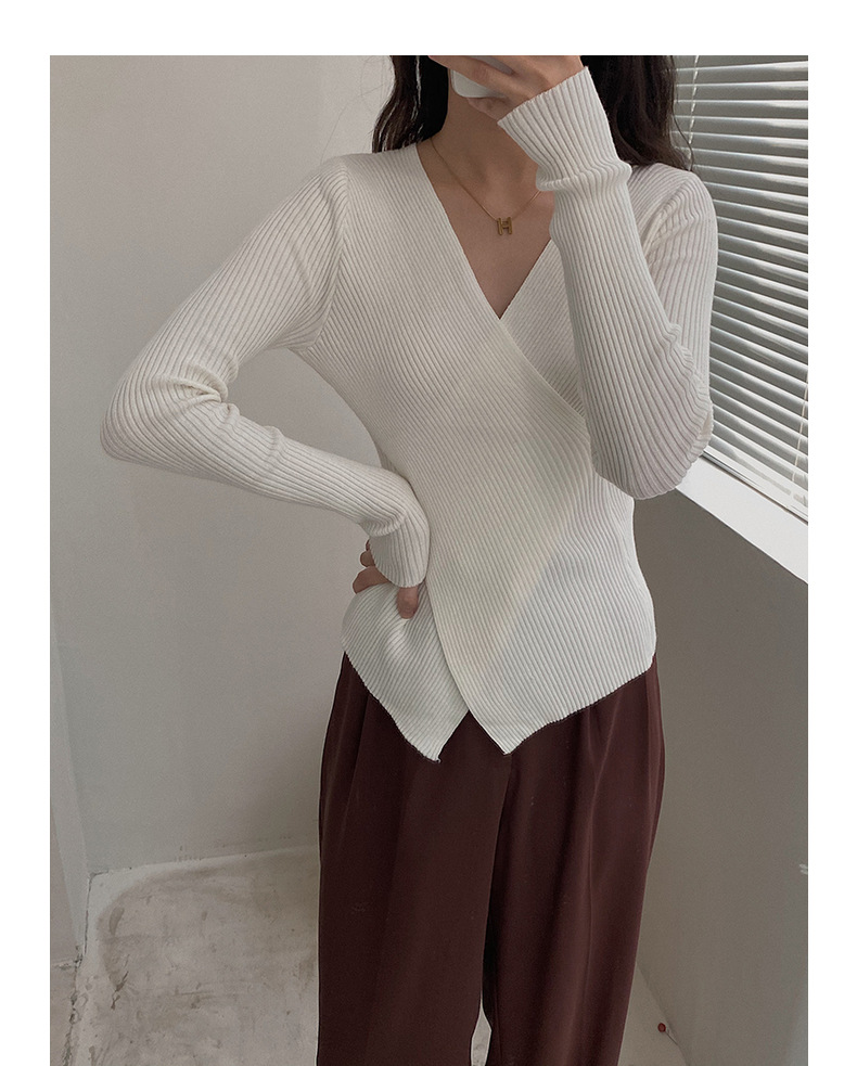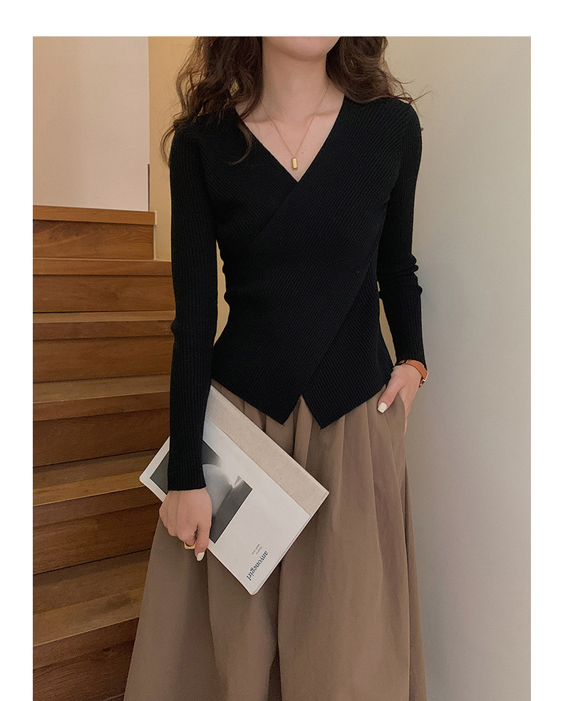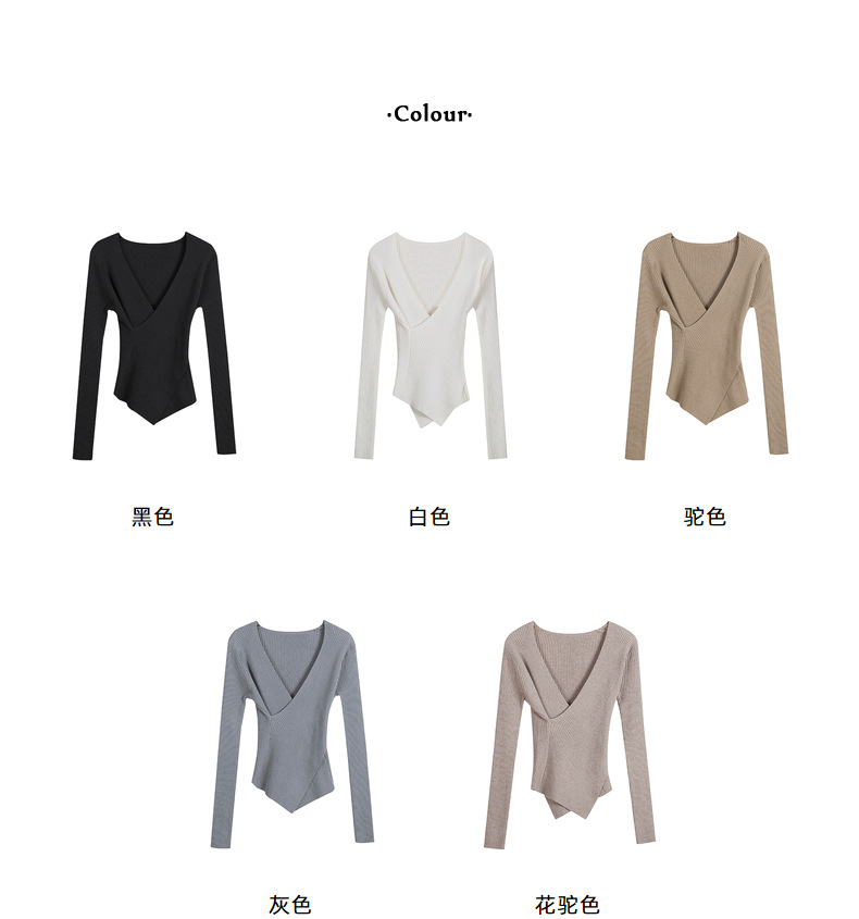 不规则V领长袖上衣